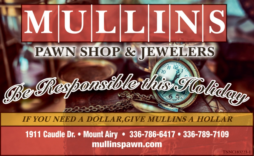 Jun 27, 2024. Mullins Pawn Shop & Jewelers Pawn Shop Ads from Mt. Airy News