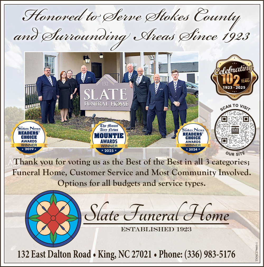 Oct 01, 2025. Slate Funeral Home Funeral Ads from Mt. Airy News
