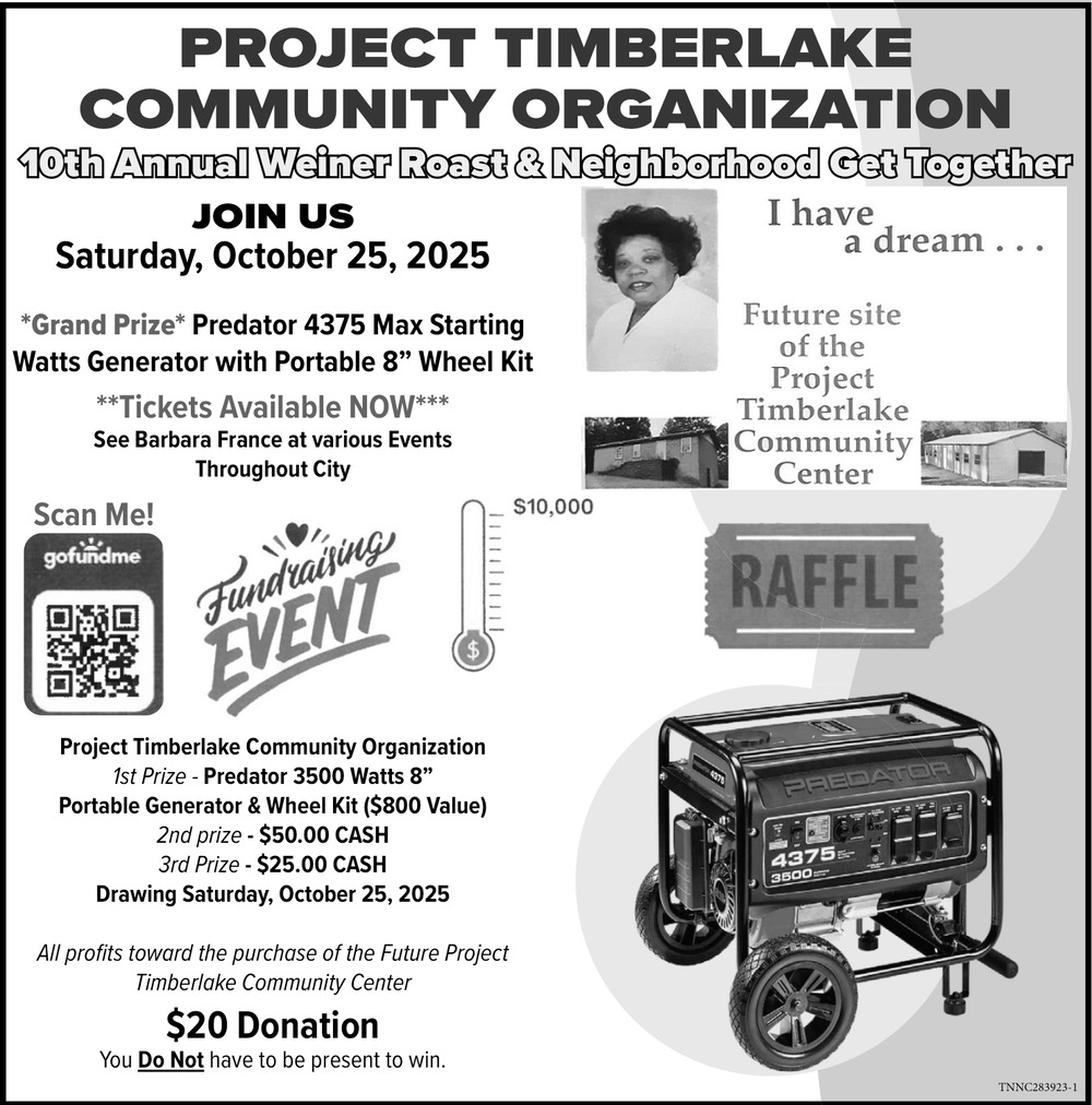 Oct 08, 2025. Project Timberlake Community Organization Events Ads from Mt. Airy News