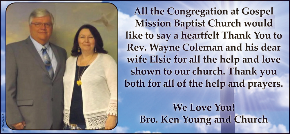 We Want to Thanks to Our Reverend Wayne Coleman and His Dea Wife Elsie for All the Help and Love Shown to Our Church