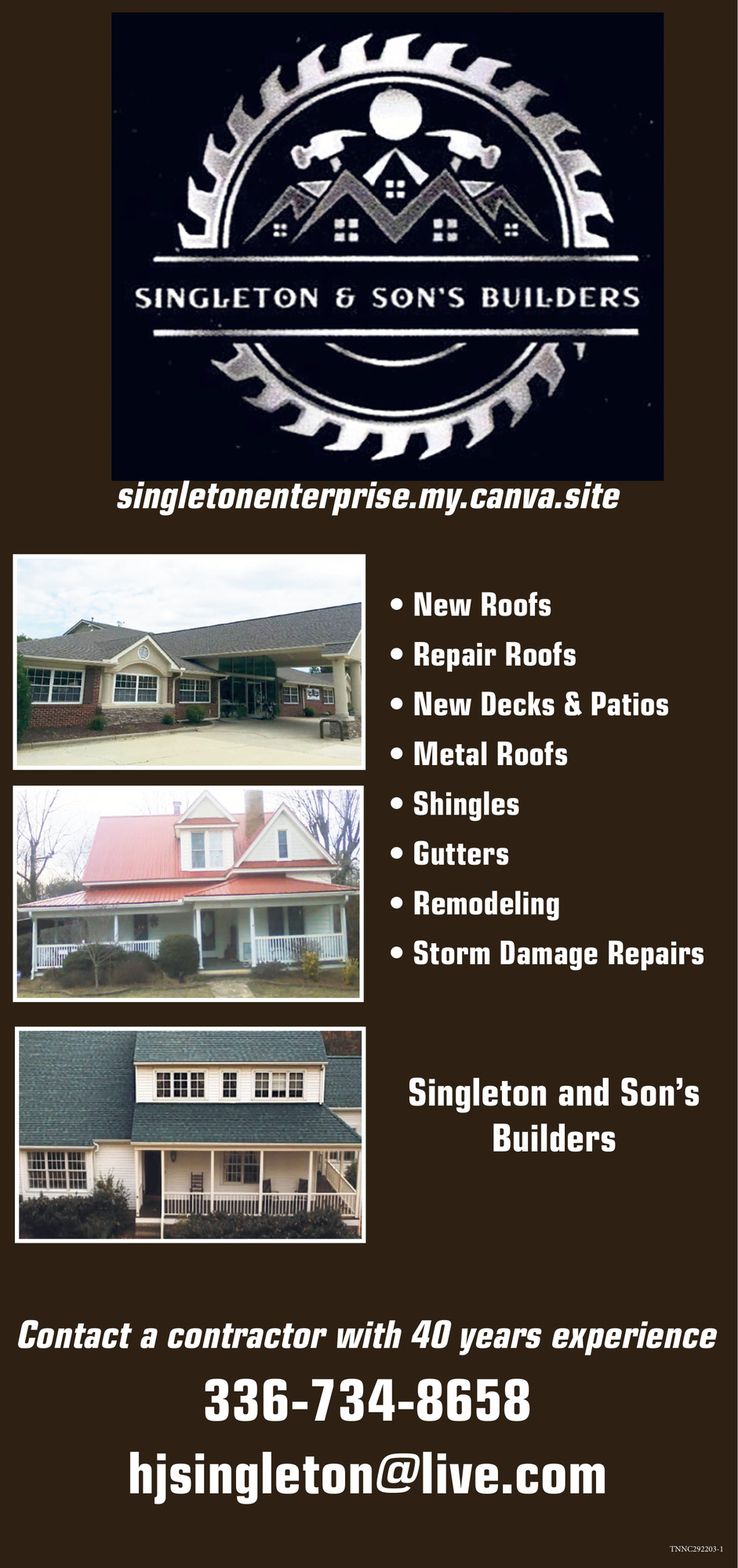 Oct 23, 2025. Singleton & Son's Builders Home Improvement Ads from The Elkin Tribune