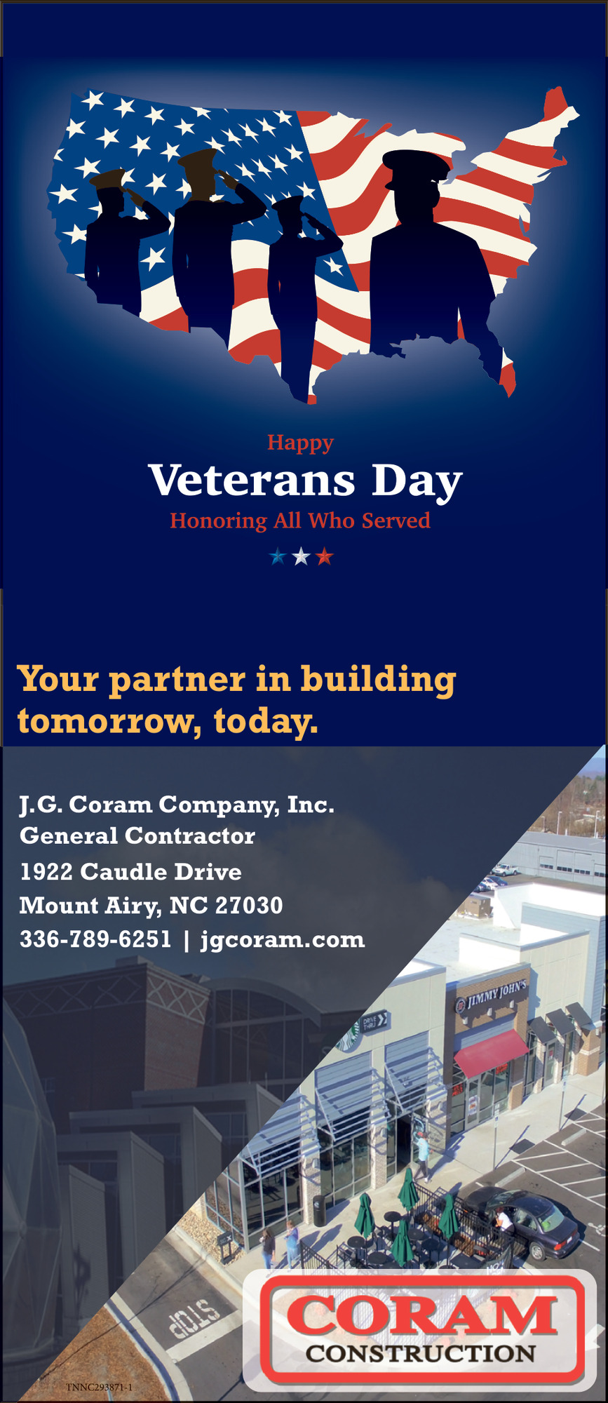 Nov 12, 2025. J.G. Coram Company, Inc. Construction Ads from Mt. Airy News