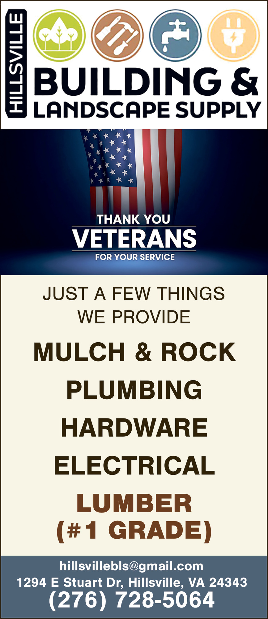 Nov 13, 2025. Hillsville Building & Landscape Supply Building Supply Ads from Carroll News