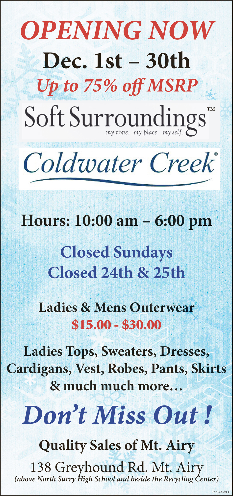 Nov 29, 2025. Quality Sales of Mount Airy Clothing Ads from Mt. Airy News
