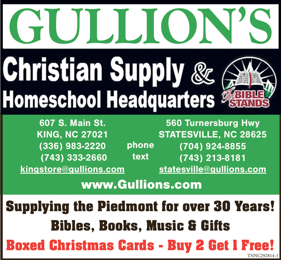 Dec 03, 2025. Gullion's Christian Supply & Homeschool Headquarters School Supplies Ads from Mt. Airy News