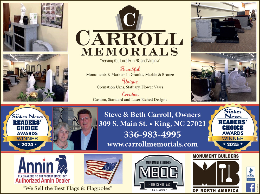 Dec 24, 2025. Carroll Memorials Funeral Ads from Mt. Airy News