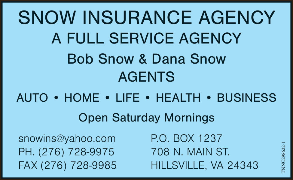 Ads for Snow Insurance Agency in Hillsville, VA