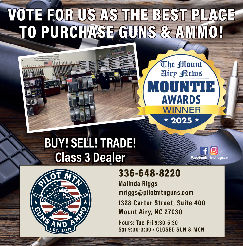 Jan 31, 2026. Pilot Mountain Guns & Ammo Guns Supplies Ads from Mt. Airy News