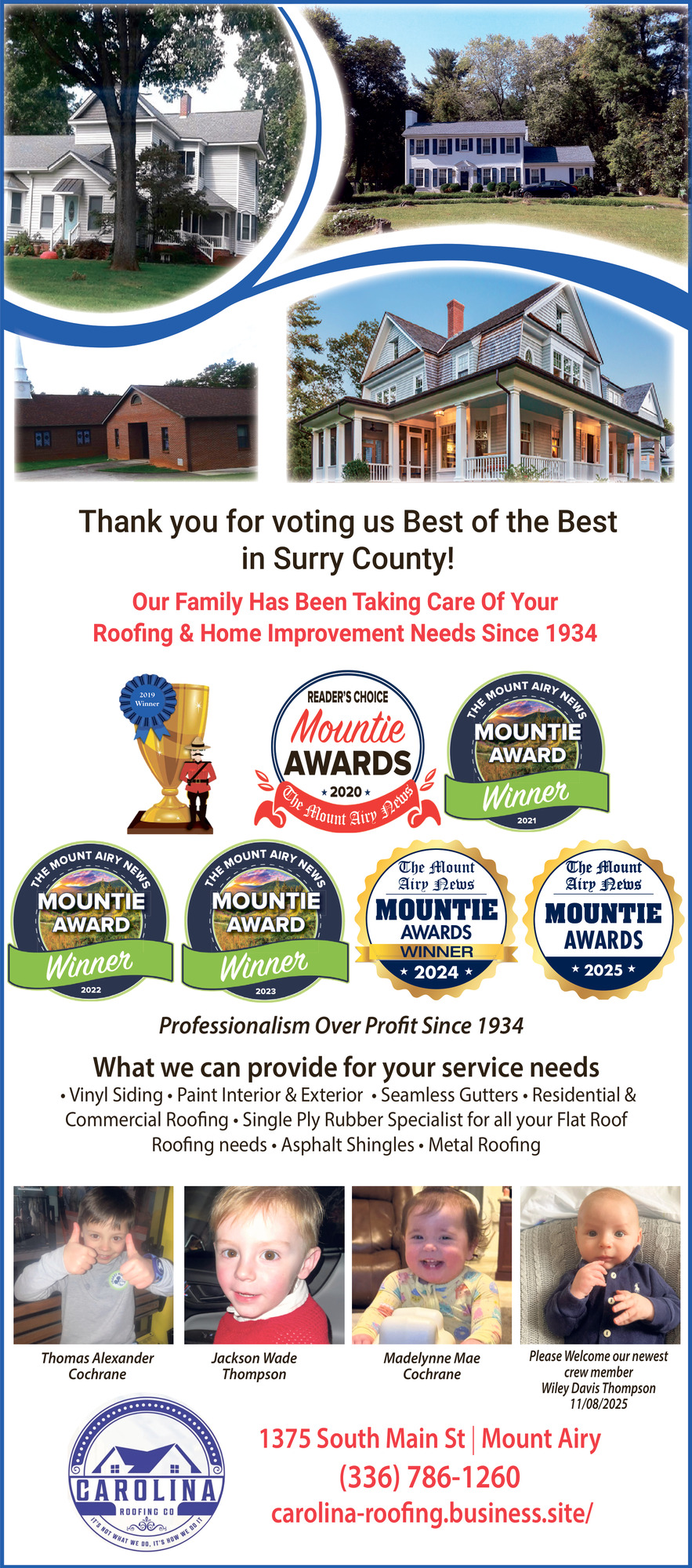 Feb 11, 2026. Carolina Roofing Home Improvement Ads from Mt. Airy News