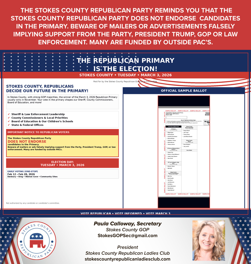 Feb 12, 2026. Stokes County Republican Party Events Ads from The Stokes News