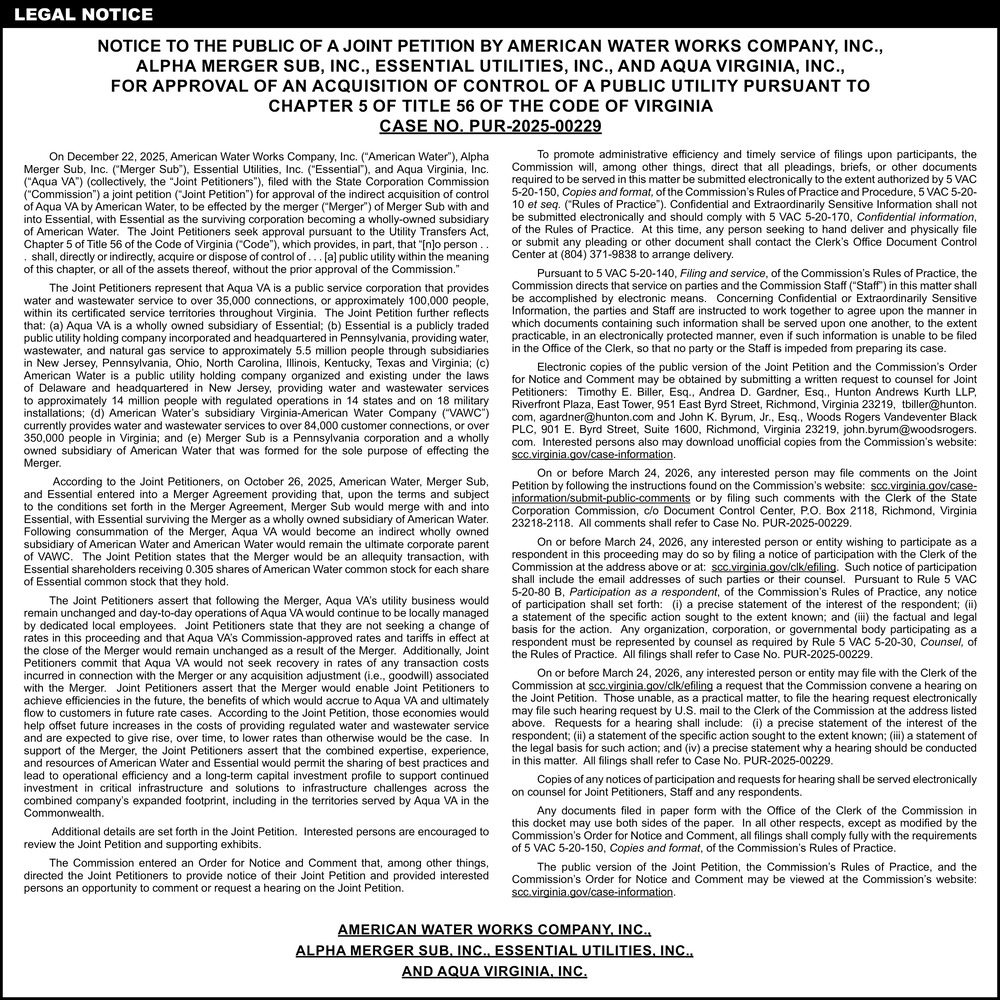 Feb 19, 2026. American Water Works Company, Inc Water Ads from Carroll News