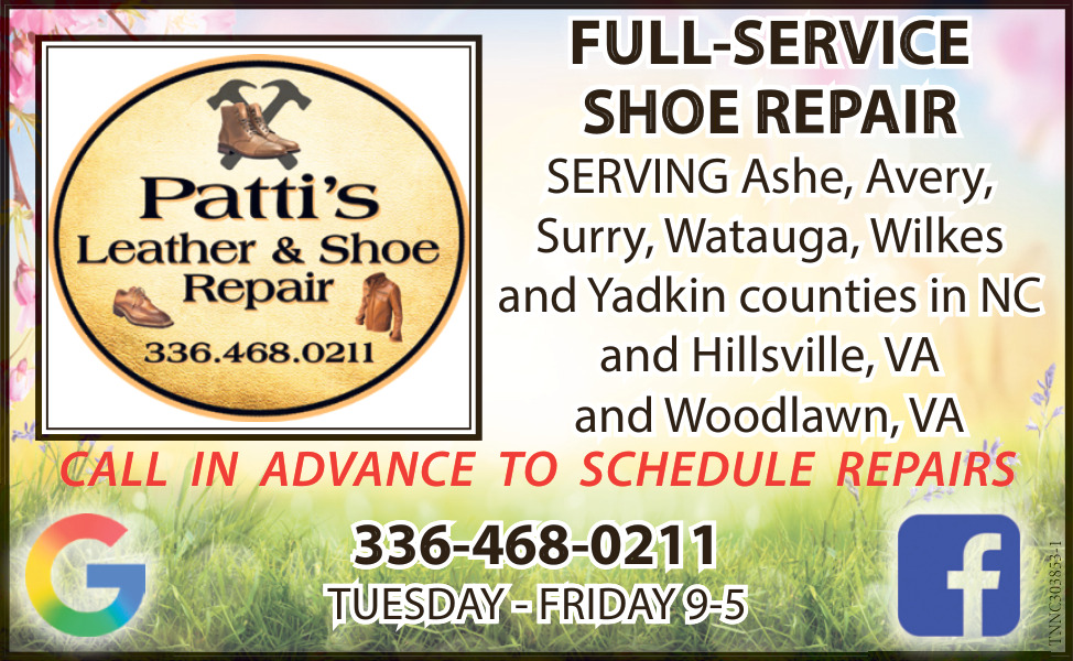 Feb 26, 2026. Patti's Leather & Shoe Repair Shoes Repair Ads from Yadkin Ripple