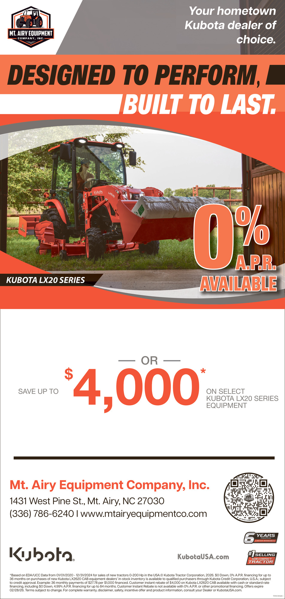 2.99% APR On Select Kubota Equipment