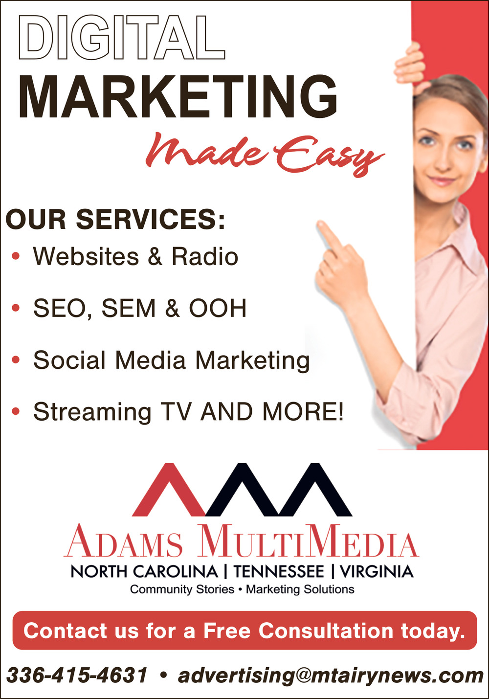 Feb 28, 2026. Adams Multimedia Print & Advertising Ads from Mt. Airy News