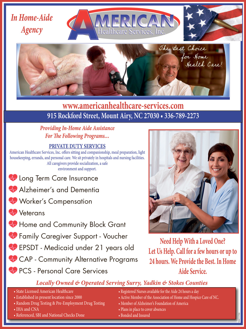 Ads for American Healthcare Services, Inc. in Mount Airy, NC