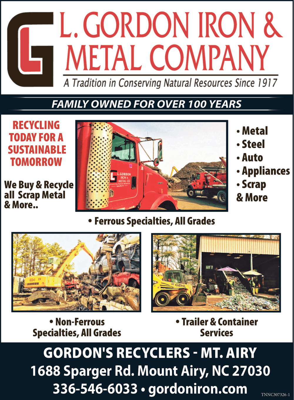 Mar 28, 2026. L. Gordon Iron & Metal Company Manufacturing Ads from Mt. Airy News