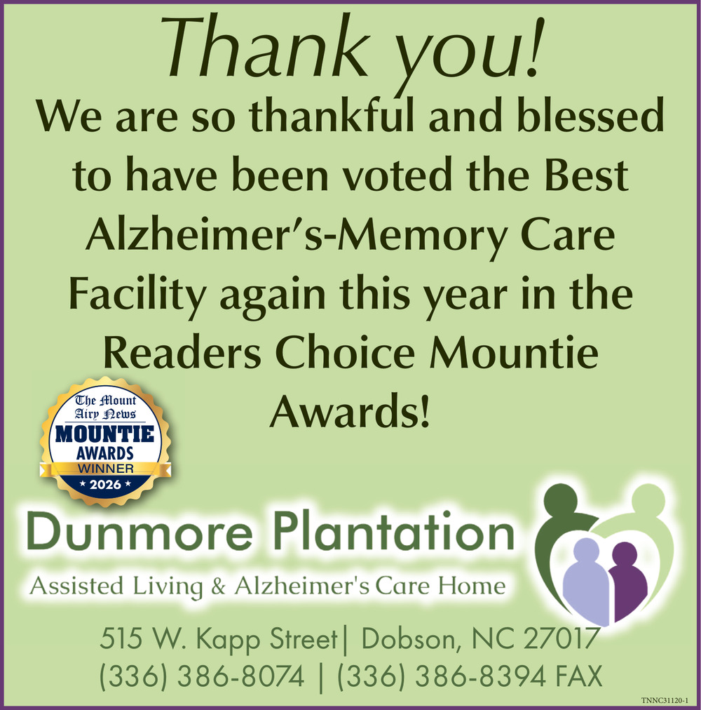 Apr 29, 2026. Dunmore Plantation Senior Living Ads from Mt. Airy News