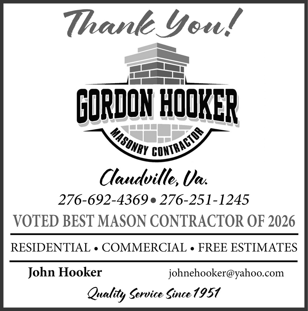 Apr 30, 2026. Gordon Hooker Masonry Contractor Construction Ads from Mt. Airy News