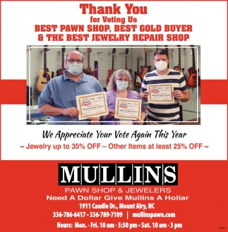 May 12, 2021. Mullins Pawn Shop & Jewelers Pawn Shop Ads from Mt. Airy News