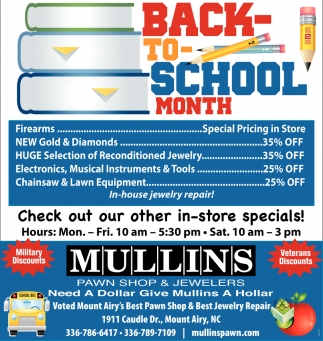 Aug 01, 2021. Mullins Pawn Shop & Jewelers Pawn Shop Ads from Mt. Airy News