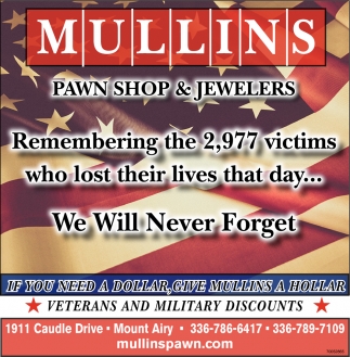 Sep 10, 2021. Mullins Pawn Shop & Jewelers Pawn Shop Ads from Mt. Airy News