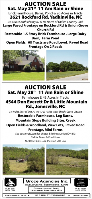 May 19, 2022. Groce Agencies Inc. Auction Ads from The Elkin Tribune