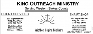 Jun 30, 2022. King Outreach Ministry Thrift Shops Ads from The Elkin Tribune